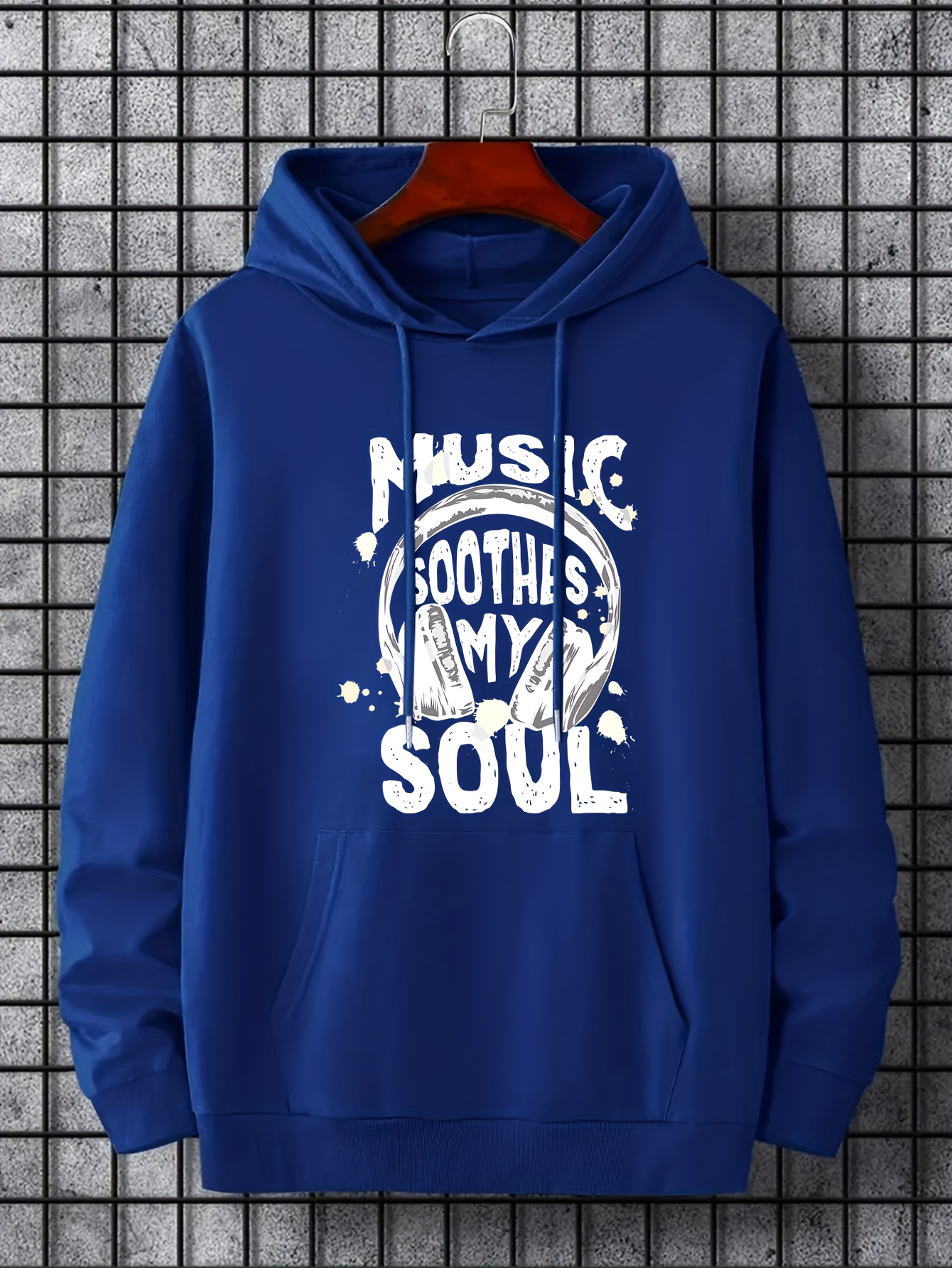 Music Lover Slogan Print Hoodie for Men - Graphic Sweatshirt with Kangaroo Pocket - Comfy and Trendy Hooded Pullover for Fall and Winter
