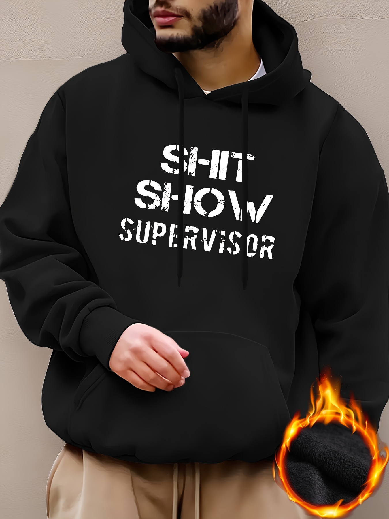 Men's Letter Print Hoodie - Casual Graphic Design Pullover Sweatshirt with Kangaroo Pocket for Winter Fall