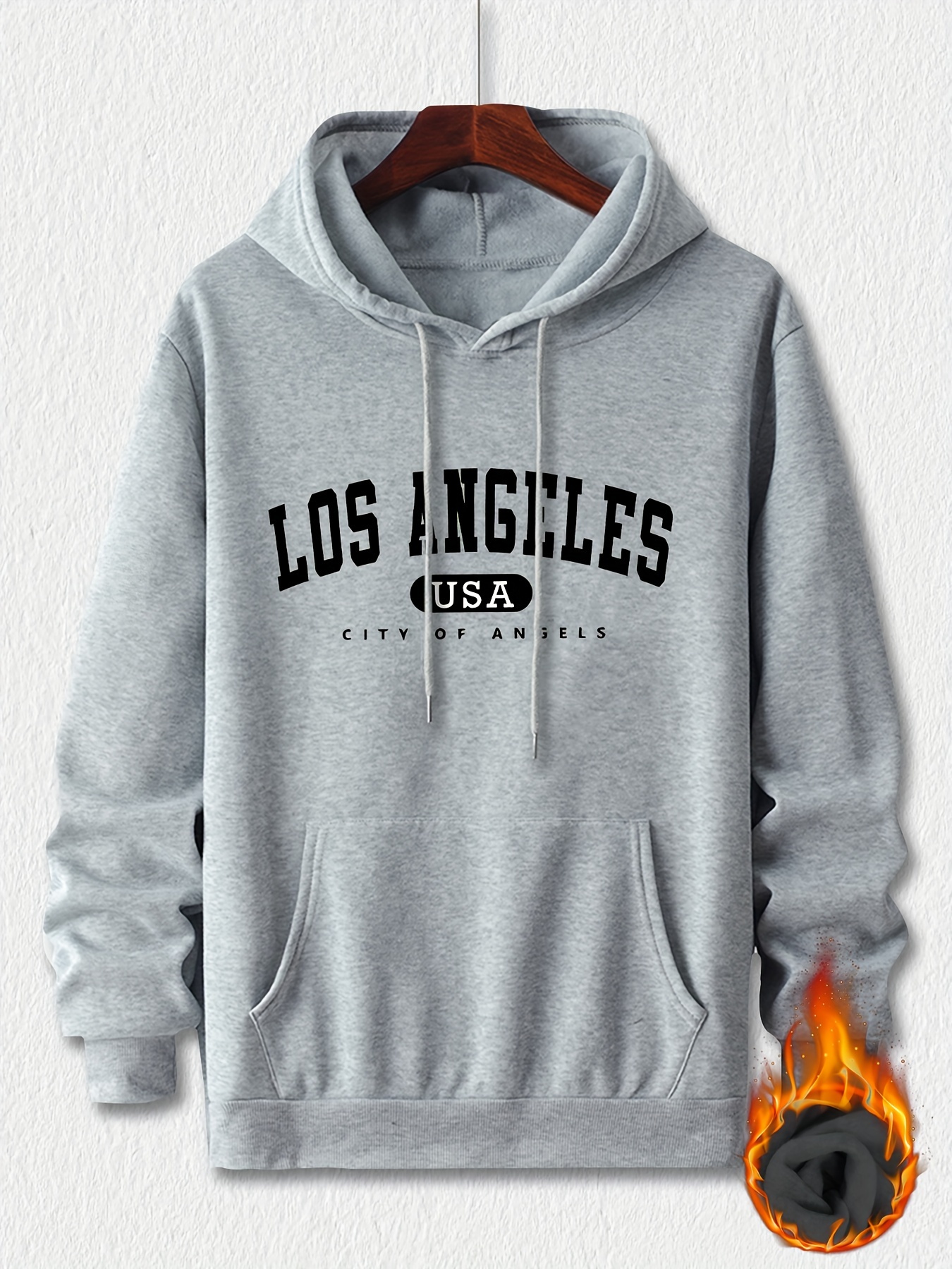 Los Angeles Print Hoodie for Men - Casual Graphic Design Pullover Sweatshirt with Kangaroo Pocket - Streetwear for Winter Fall