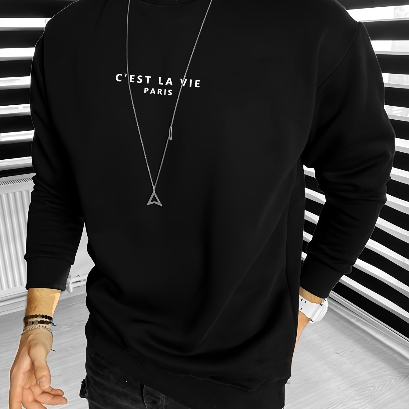 C'est La Vie Paris Print Chic Sweatshirt for Men - Graphic Design Crew Neck Pullover for Spring, Fall, and Winter