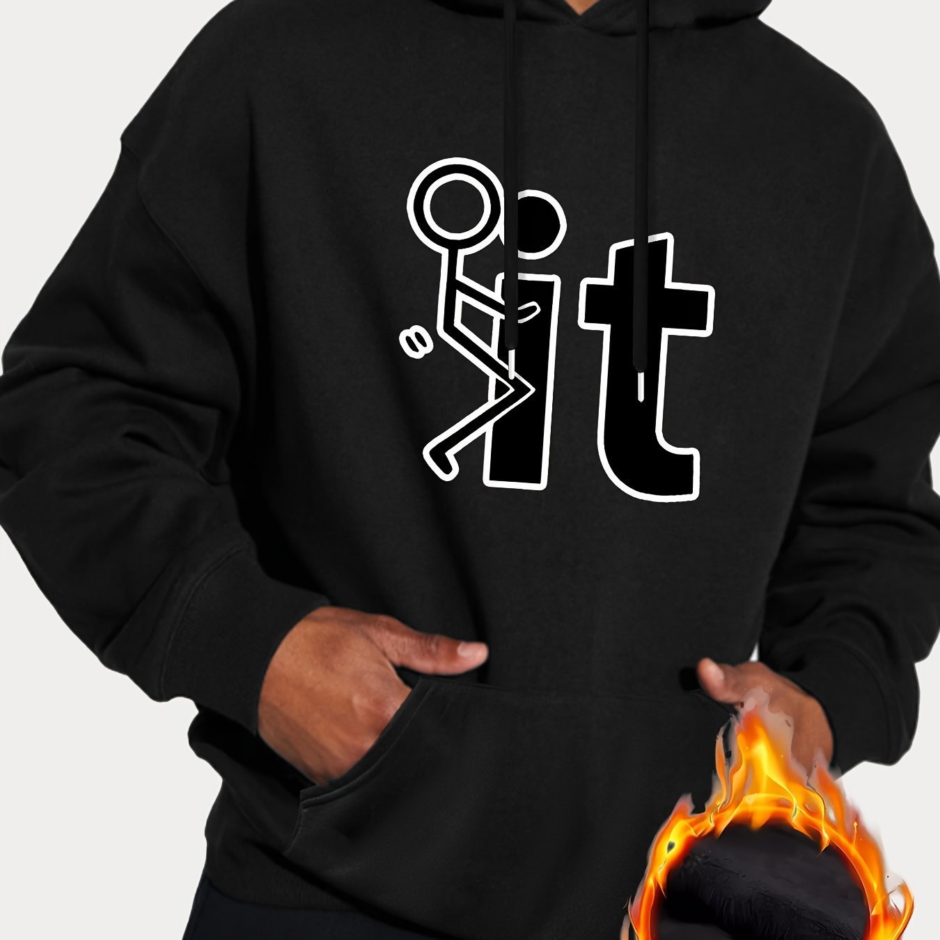 Men's Stick Figure Print Hooded Sweatshirt - Casual Long Sleeve Pullover for Autumn/Winter