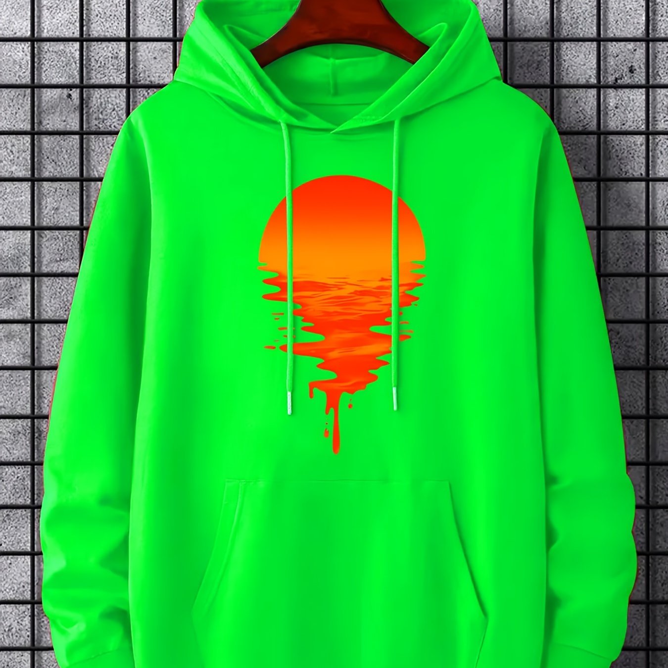 Men's Sunset Print Hoodie - Casual Graphic Design Pullover Sweatshirt for Winter - Streetwear Gift