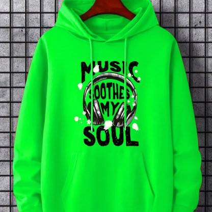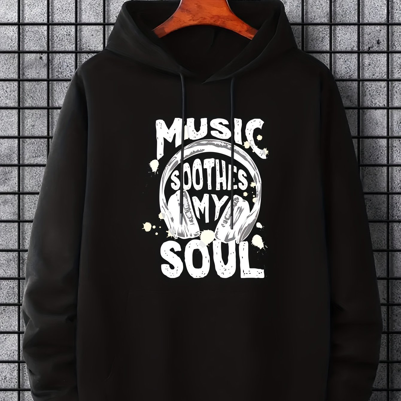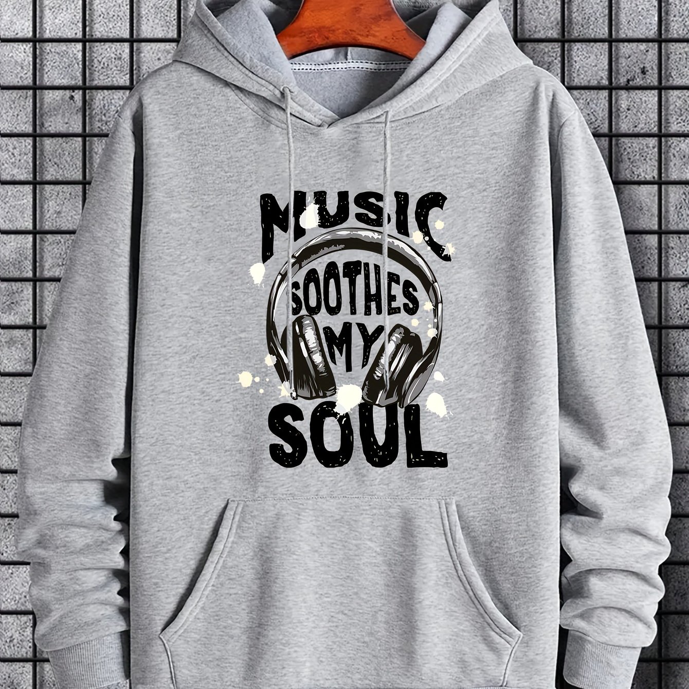 Music Lover Slogan Print Hoodie for Men - Graphic Sweatshirt with Kangaroo Pocket - Comfy and Trendy Hooded Pullover for Fall and Winter