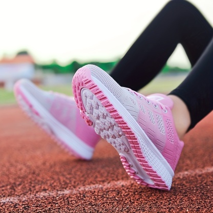 Women's Flying Woven Mesh Sneakers, Lace Up Low-top Round Toe Air Cushion Soft Casual Shoes, Outdoor Sporty Trainers