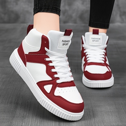 Material: Faux leather Closure: Lace up Toe Style: Plain toe Patterned: Solid color Shoe height: High top All-season: All-season Printing Type: No Printing Style: Sports